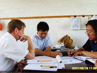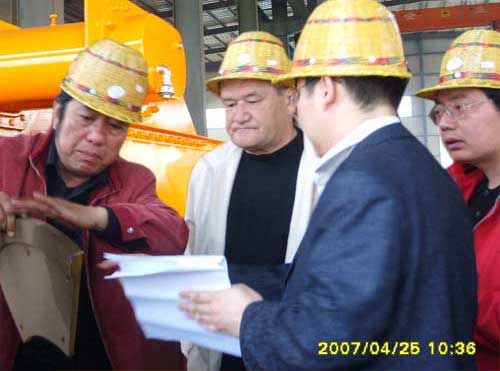 公司領導與客戶商討技術問題 | 公司領導與國外客人進行技術交流 | 車間一隅 |