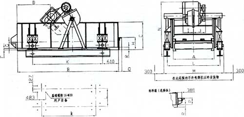 雙層ZKX型直線振動篩(礦用振動篩)安裝尺寸: