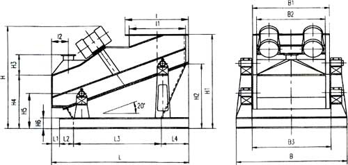 (1)ZSG系列單層篩外形及安裝尺寸。注:下圖為封閉式振動篩,敞開式無進料口、除塵口,亦無I、I1、I2、H3之尺寸。型號 | ZSGB-10×20 | ZSGB-10×30 | ZSGB-15×30 | ZSGB-15×40 | ZSGB-15×50 | ZSGB-20×50 | ZSGB-20×60 | ZSGB-20×70 | ZSGB-20×18 |